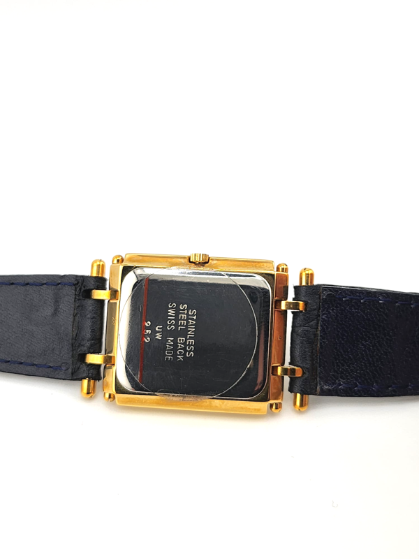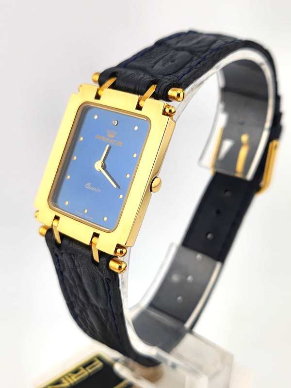 Original blue leather strap with pin buckle.