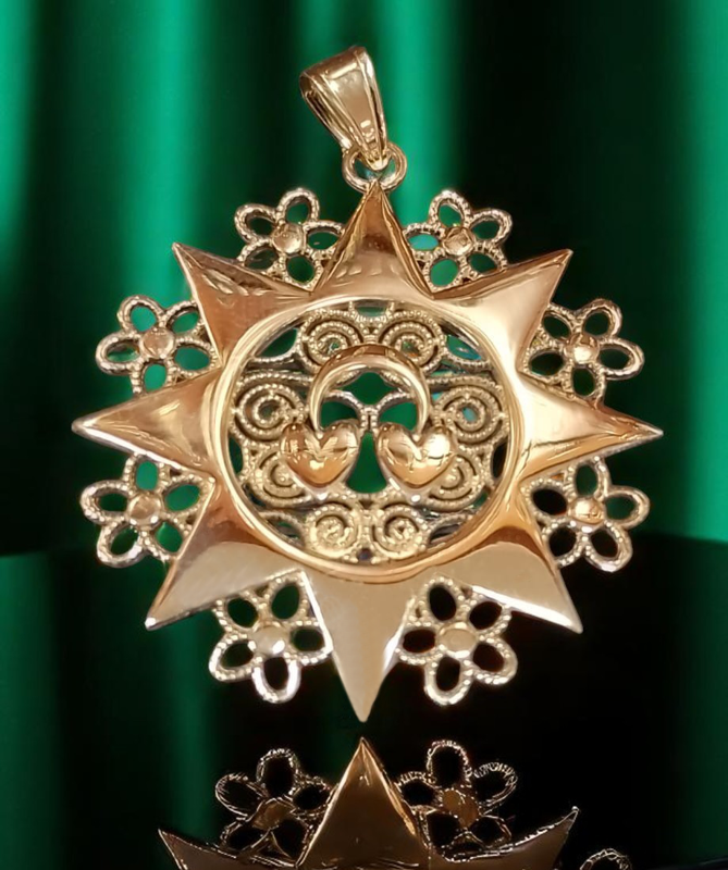 Bellissimo Ciondolo chiamato "Presentosa" con 2 cuori realizzato in ORO Giallo 18kt/750°.