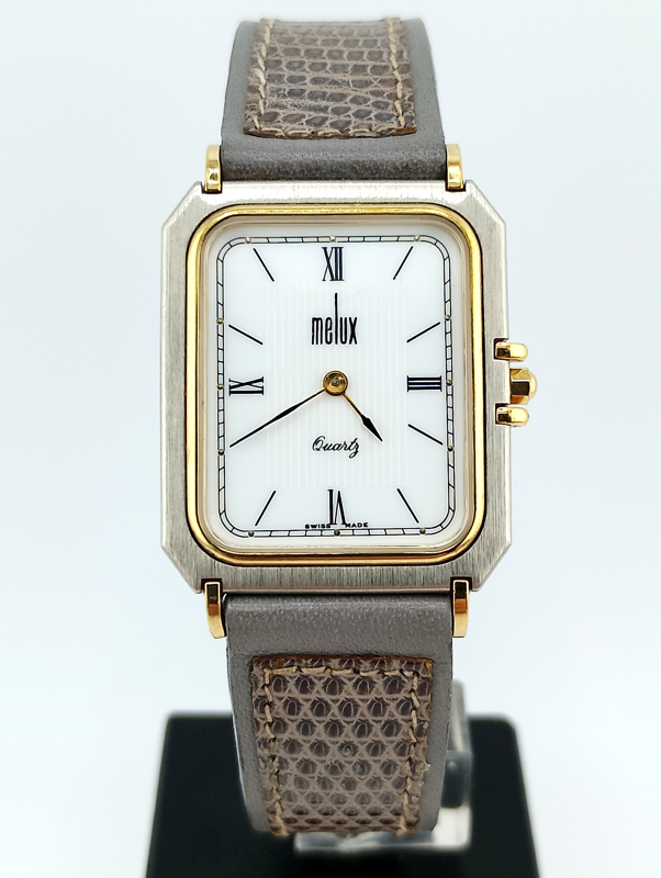 Tank Vintage anni 80' NUOVO mai usato o indossato Melux. Orologio elegante, molto delicato, perfetto per l'uso quotidiano o per eventi speciali, da collezione.