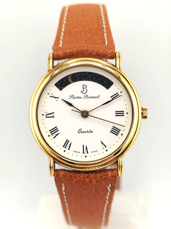 Scopri il fascino senza tempo di questo Pierre Bonnet Fasi Lunari, un orologio vintage che unisce stile classico, affidabilità meccanica e un carattere unico impossibile da trovare nei modelli moderni.