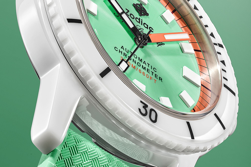 Il modello più famoso di Zodiac è tornato. Lanciato nel 1953, questo iconico orologio subacqueo, noto agli amanti del vintage, torna con linee modernizzate e una cassa in ceramica per una maggiore resistenza ai graffi.
