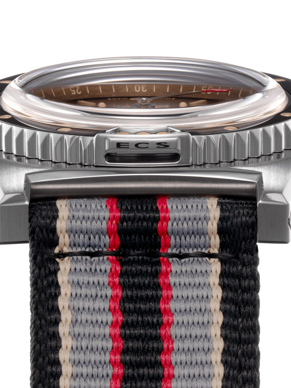 La cassa ospita il calibro SELLITA “Elaboré” SW200-1, un rinomato movimento meccanico a carica automatica prodotto in Svizzera, che offre una riserva di carica di 38 ore.Il cinturino è in materiale sintetico NATO disponibile in 4 taglie S-SM-M-L.